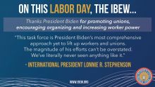 Celebrating Labor Day with IBEW MembersPresident Biden spent the day dedicated to workers with members of the IBEW. Along with IBEW President Lonnie Stephenson, President Biden delivered sandwiches to members of Wilmington, Del. Local 313 on Labor Day, Sept. 6. He played cornhole and chatted with about 35 members of the local union. An article about the event described a moment when “the president began talking into an iPhone to a union member’s mom, telling her that he’d been with the union since he was first elected to public office in the early 1970s.”“I'm with your son," Biden said. "Mom... Read More
